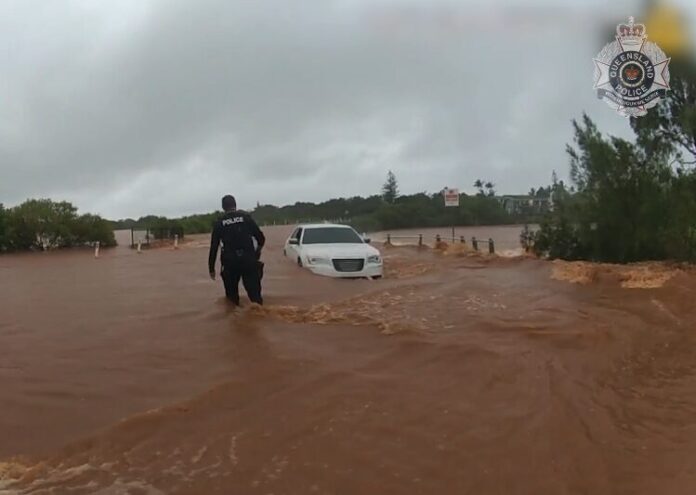 Then, just before 10.20am, Police were called to Brian Pastures Road in Gayndah, North Burnett, to reports two women inside a vehicle had become trapped in floodwaters.