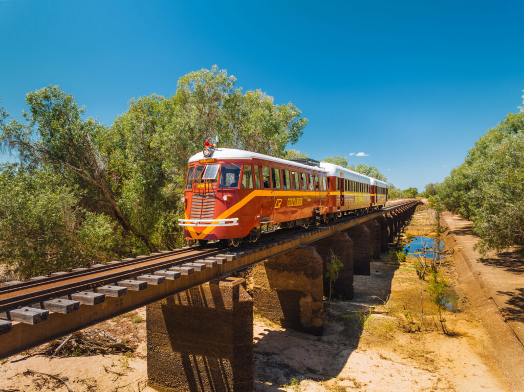 Said to go from “nowhere to nowhere”, this heritage-listed railway line opened in 1891. Originally built to connect the once bustling river port of Normanton with the rich gold fields of Croydon. Still measured in miles, the line was built to withstand almost anything – including floods and termites. The construction of the line is an ingenious engineering feat, and even today, retains most of the original rail and sleepers.